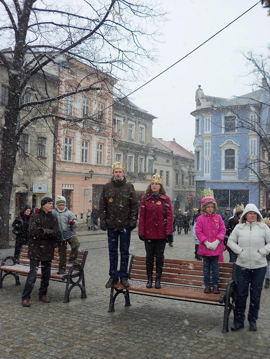 Przed kościołem spotykam się z moją "trasową" koleżanką i wspólnie z nią i oczywiście z wszystkimi dzisiejszymi królami idziemy do Betlejem na bielskim rynku.