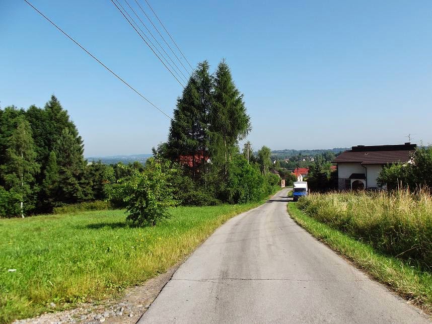 Początek na dworcu autobusowym w Kalwarii Zebrzydowskiej o 8.04, początkowo bezszlakowo, w stronę miejscowości Brody, gdzie na jej początku wchodzimy na szlak niebieski o 8.17. Tym razem pamiętając moje styczniowe przeoczenie szlaku, idziemy prawidłowo. Powoli w górę w stronę Góry Lanckorońskiej.