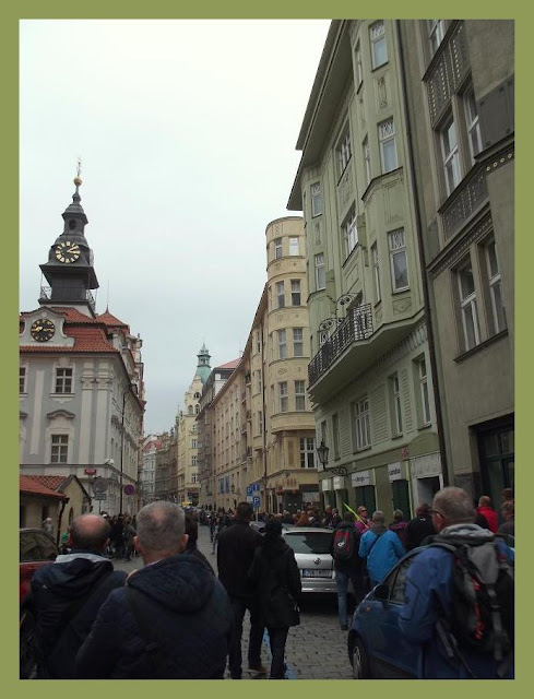 Z Józefowa o 15.31 docieramy na Stare Miasto, gdyż o 16.00 będziemy obserwować 20-sekundowy pokaz ruchomych figurek przy zegarze zwanym Orloj. Po pokazie hejnalista na trąbce dopełnił całości.