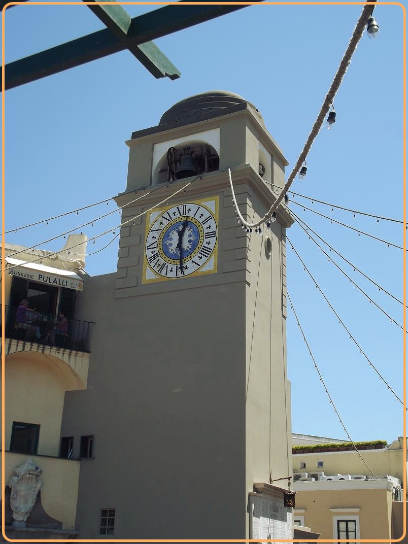 Potem rejs dokoła pięknej wyspy, z zaglądaniem do różnych grot, w tym do zielonej. Rejs trwał od 11.02 do 11.58. Następnie kolejką wyjeżdżamy do miasta Capri, w którym sporo atrakcji dla milionerów i miliarderów. Dla nas też - oczywiście. Piękna przyroda, widoki i zakamarki, które ja szczegółowiej poznaję w czasie wolnym. Zostałem w mieście, a większa część wycieczki wybrała od razu zjazd na dół i plażowanie. Ja zjechałem na dół dopiero o 14.48. Tam piwko beczkowe serwowane przez sympatyczną Ukrainkę i tak doczekałem się ponownego spotkania z grupą i odpłynięcie statkiem do Sorrento. Tym razem rejs trwał od 16.05 do 16.35. Pokład odkryty, więc można było podziwiać widoki zatoki.