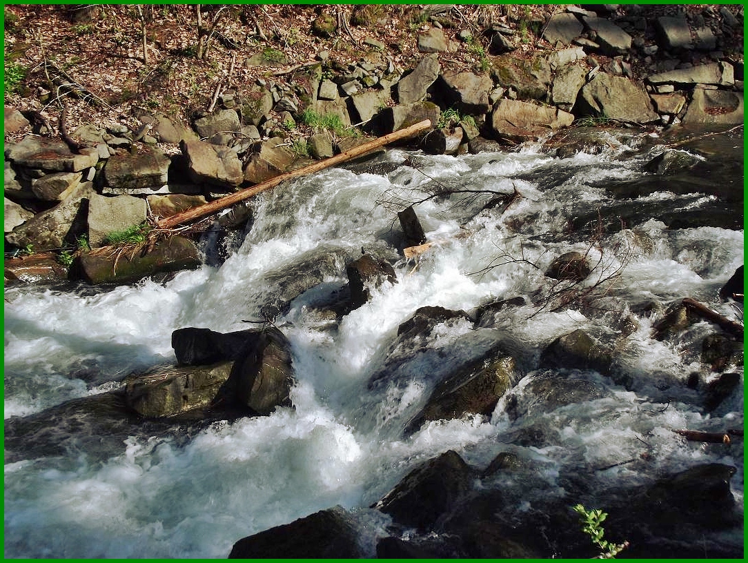 Dużo będzie wody z początku obrazków, gdyż po obfitych opadach jej stan wszędzie mocno podniósł się i dziś płynie strużkami, strugami, potokami, rzeczkami dość intensywnie, ale jakież to jest wdzięczne do oglądania i słuchania melodii, którą wygrywa płynąc po kamieniach i nie tylko po kamieniach.